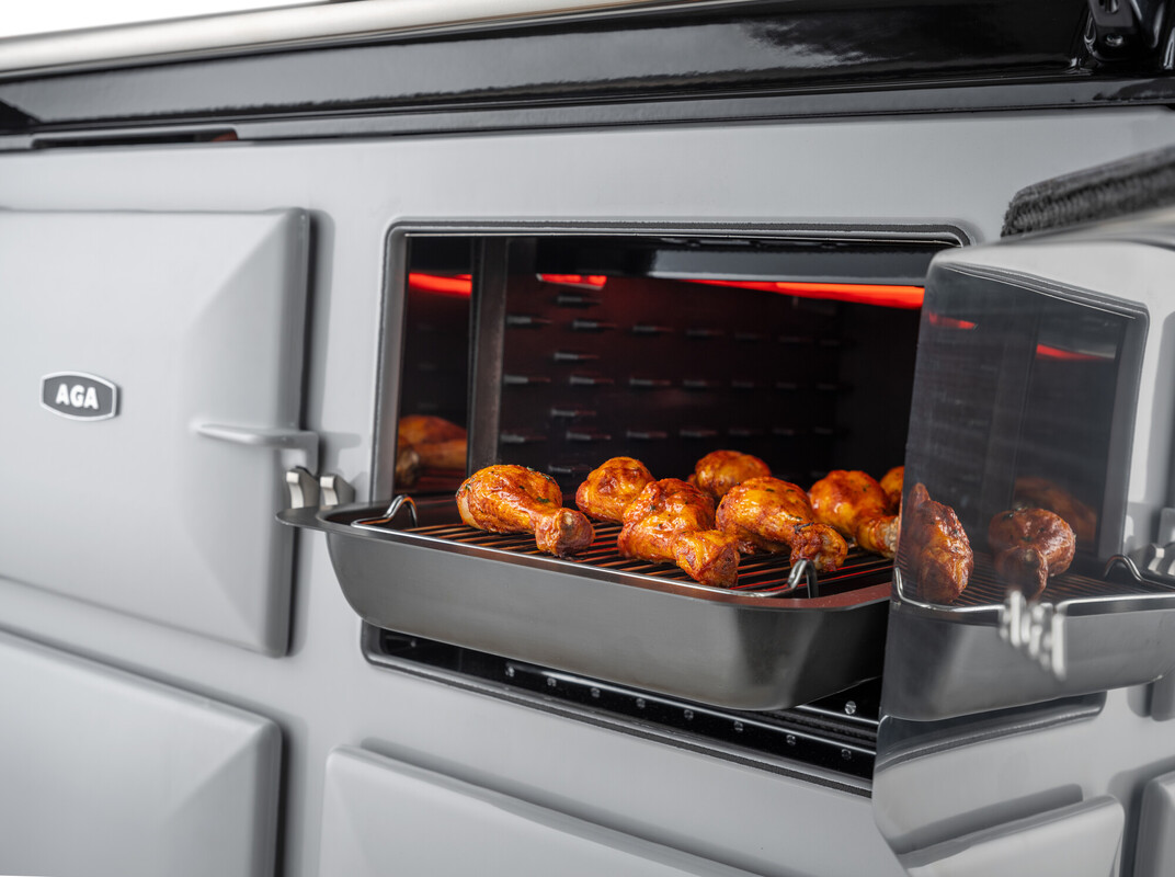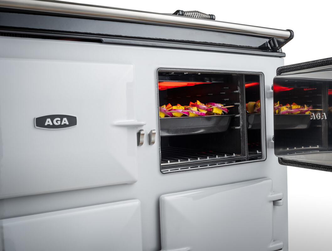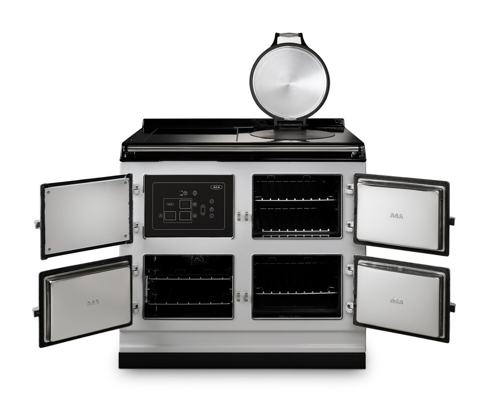 De AGA eR7i-serie biedt koken met stralingswarmte in gietijzer, in combinatie met innovatieve technologie voor extra fornuiscapaciteiten. Met drie ovens met een grote capaciteit - twee gietijzeren warmteopslagovens - één voor roosteren en bakken en één voor langdurig, langzaam sudderen - plus een conventionele ventilatoroven, allemaal bediend met een ultramodern touchscreen - biedt dit fornuis alles wat een kok nodig heeft.